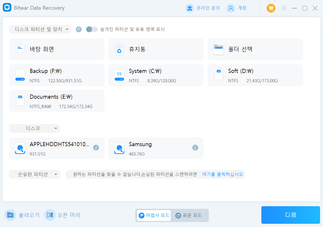 Bitwar Data Recovery - 간편하고 강력한 데이터 복구 소프트웨어