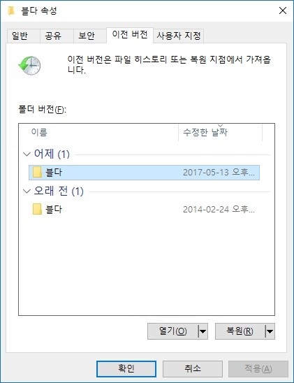 먼저 Windows에서 휴지통과 이전 버전 확인하기
