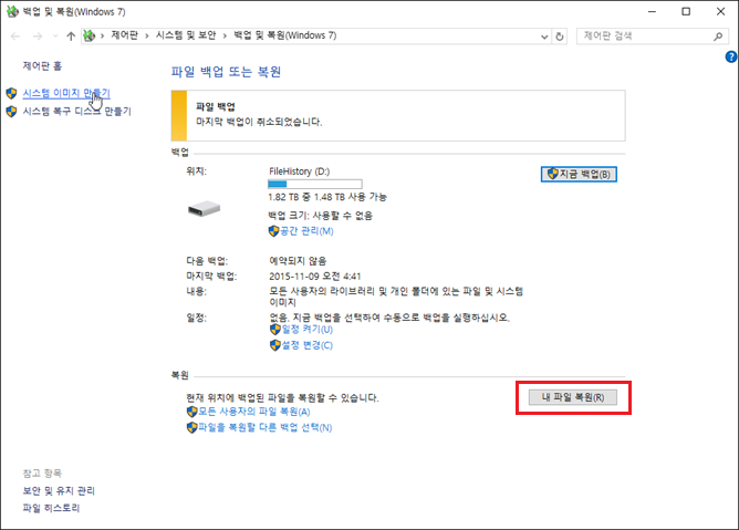 - “내 파얼 복원”을 클릭하세요.